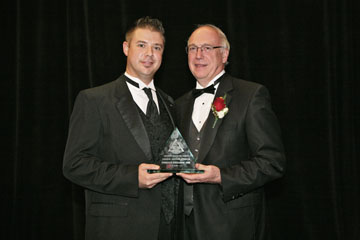 Alumni President Josh Hutter presents the Honor Award to Dr. William Calnon